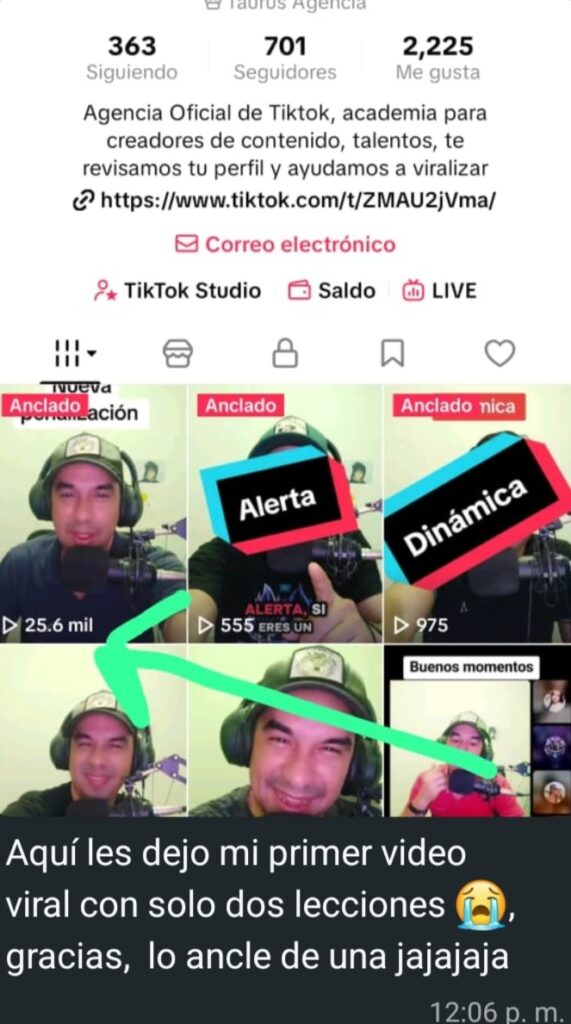 Con su cuenta nueva logró su primer video viral con solo 2 lecciones del curso en linea.